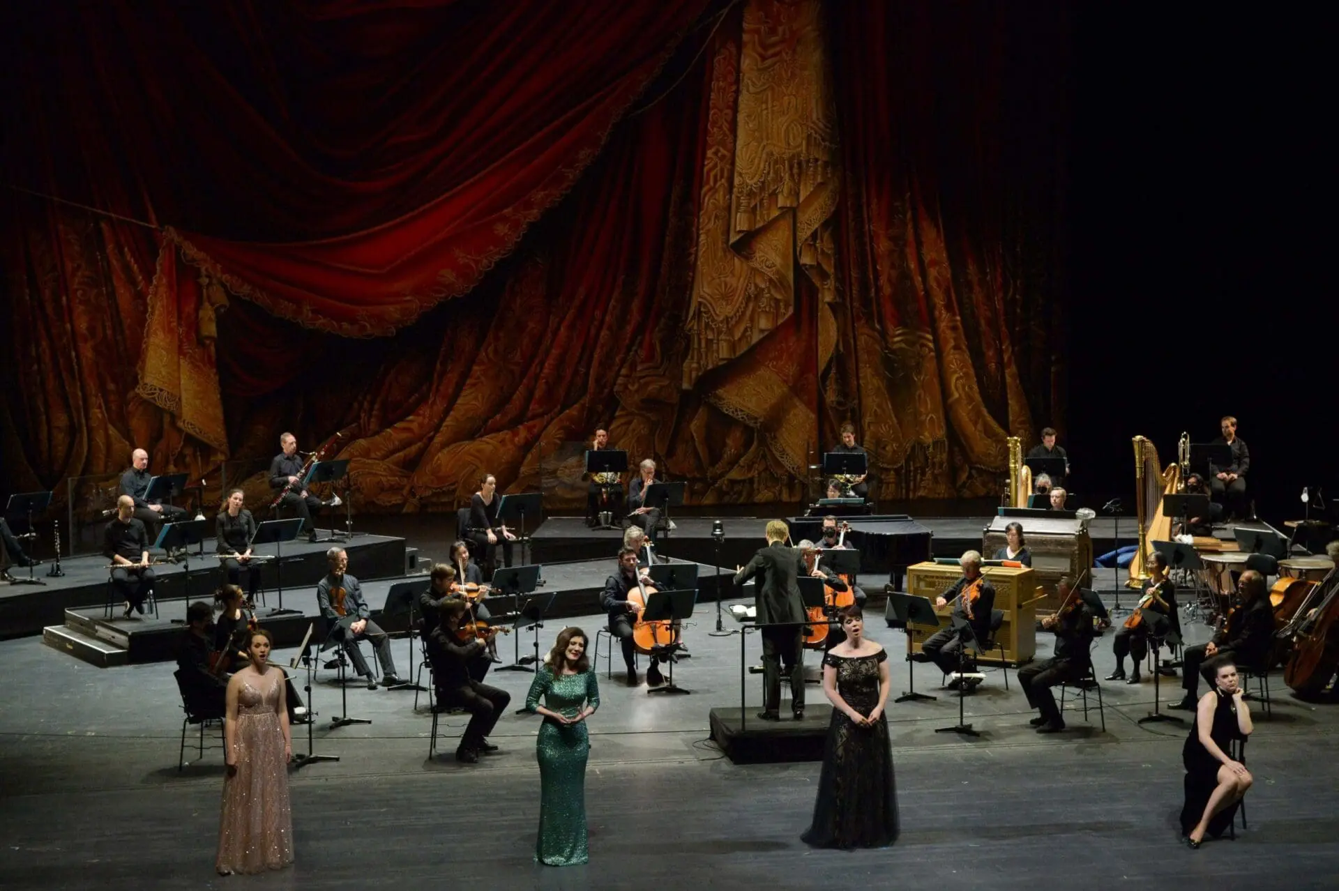 With no set, simplified blocking, and singers placed in acoustically advantageous positions, the current semi-staged production gives the audience a more refined musical experience. Decreasing the visual stimuli allows the audience to relax its eyes and open its ears to hear Strauss’s dense, intricate, rapidly shifting music in greater detail.