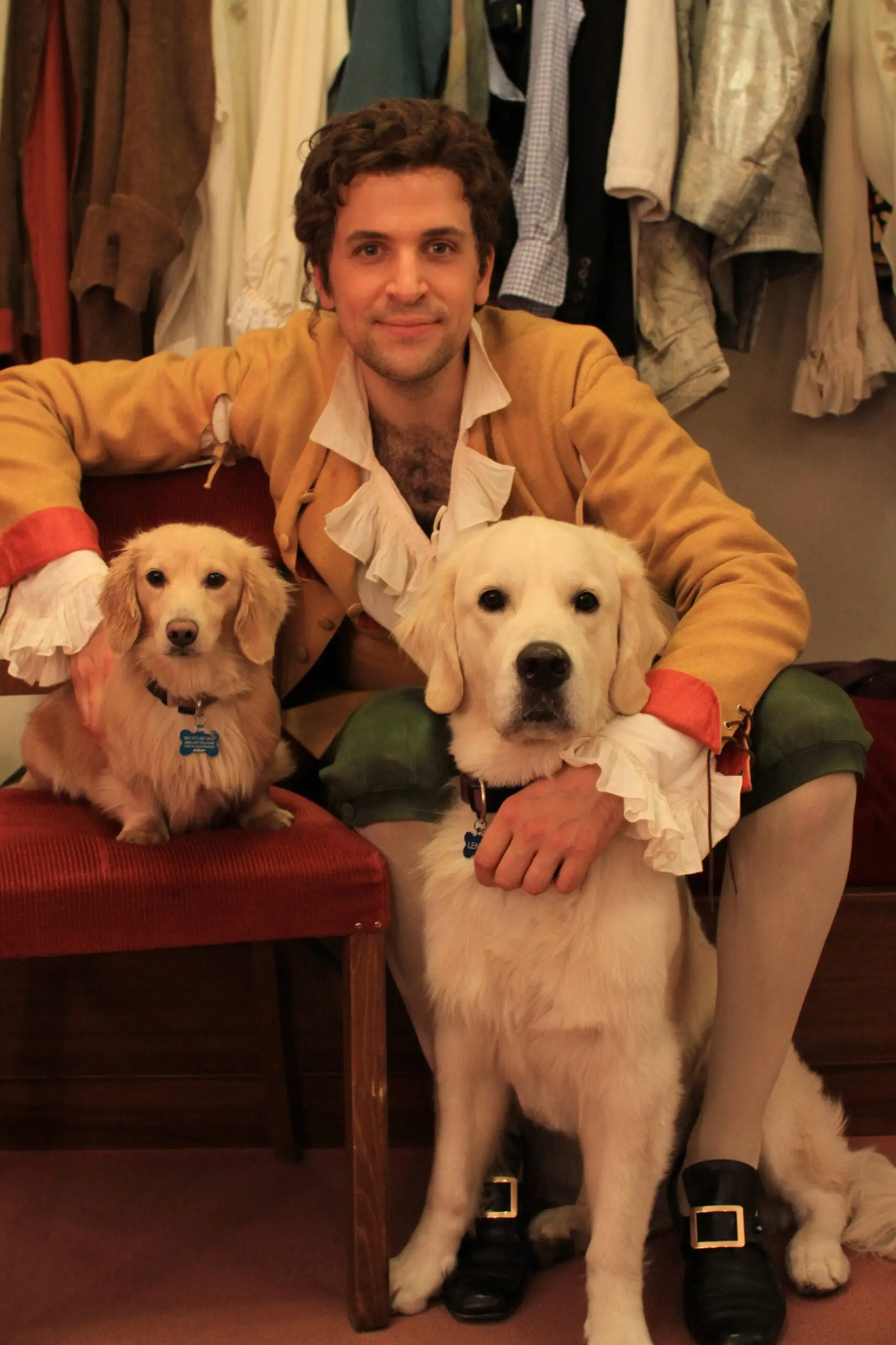 Luca Pisaroni with his two traveling companions, miniature dachshund Tristan and golden retriever Lenny 2.0 (Photo Courtesy of the Artist)