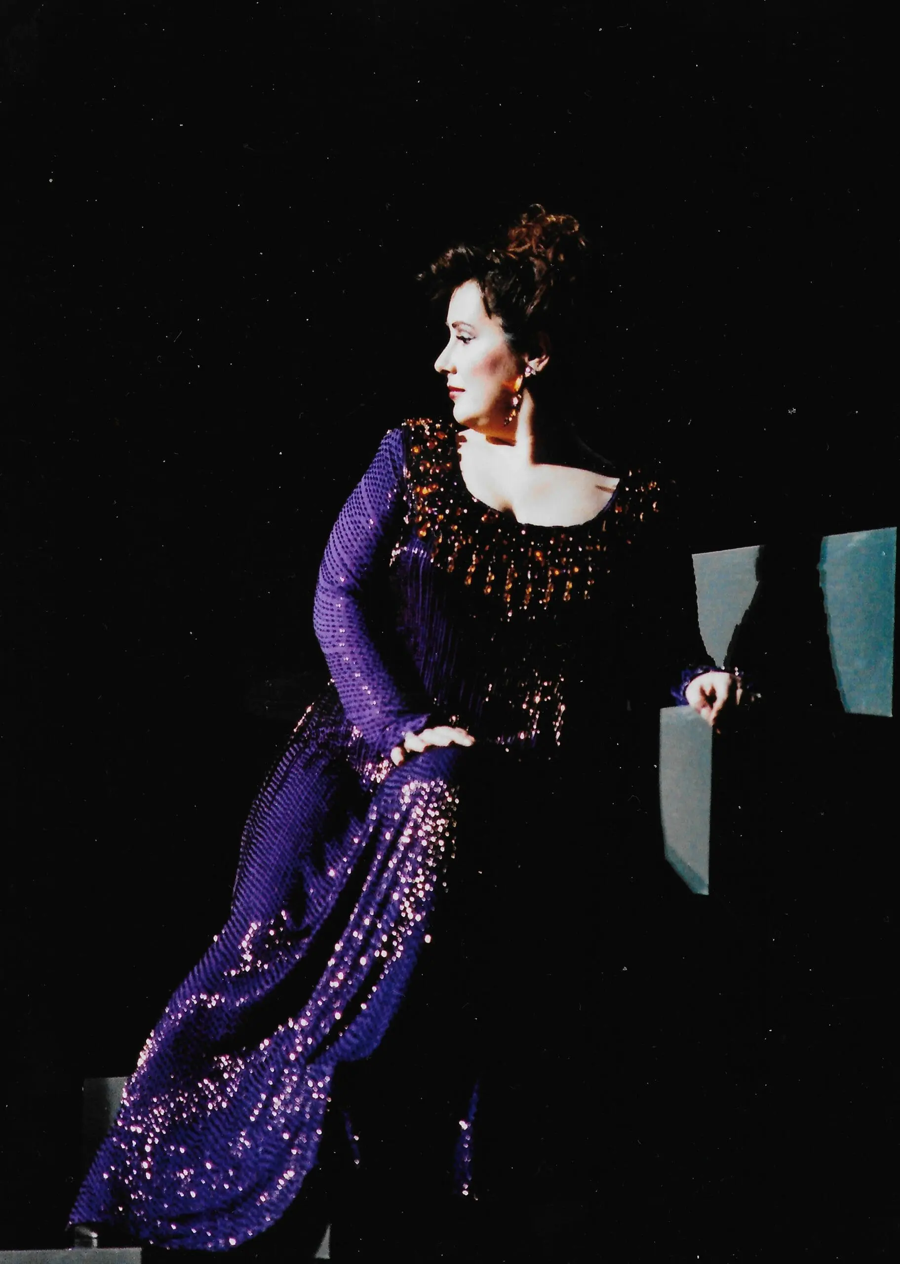 Free falling from a 20 feet high raked stage in the death scene of the Armenian opera Anoush for Michigan Opera Theatre. On the top of the cliff, after singing my final high G note, I would turn around to face the river and let myself go. I had to learn with a gymnastics coach how to flip myself around in mid air and then land on my back on the thick blue cushiony mat with a big X and a couple of stage hands waiting for me.