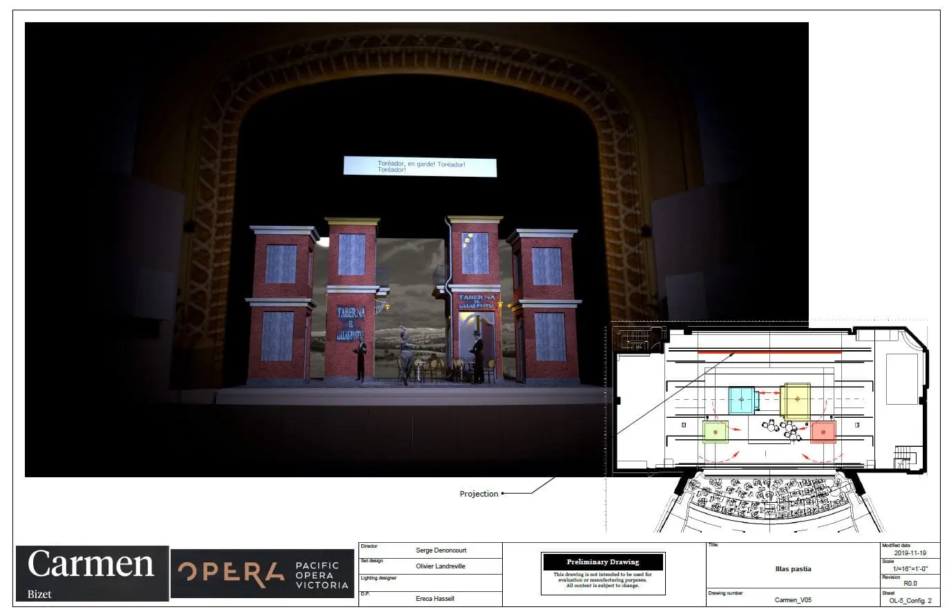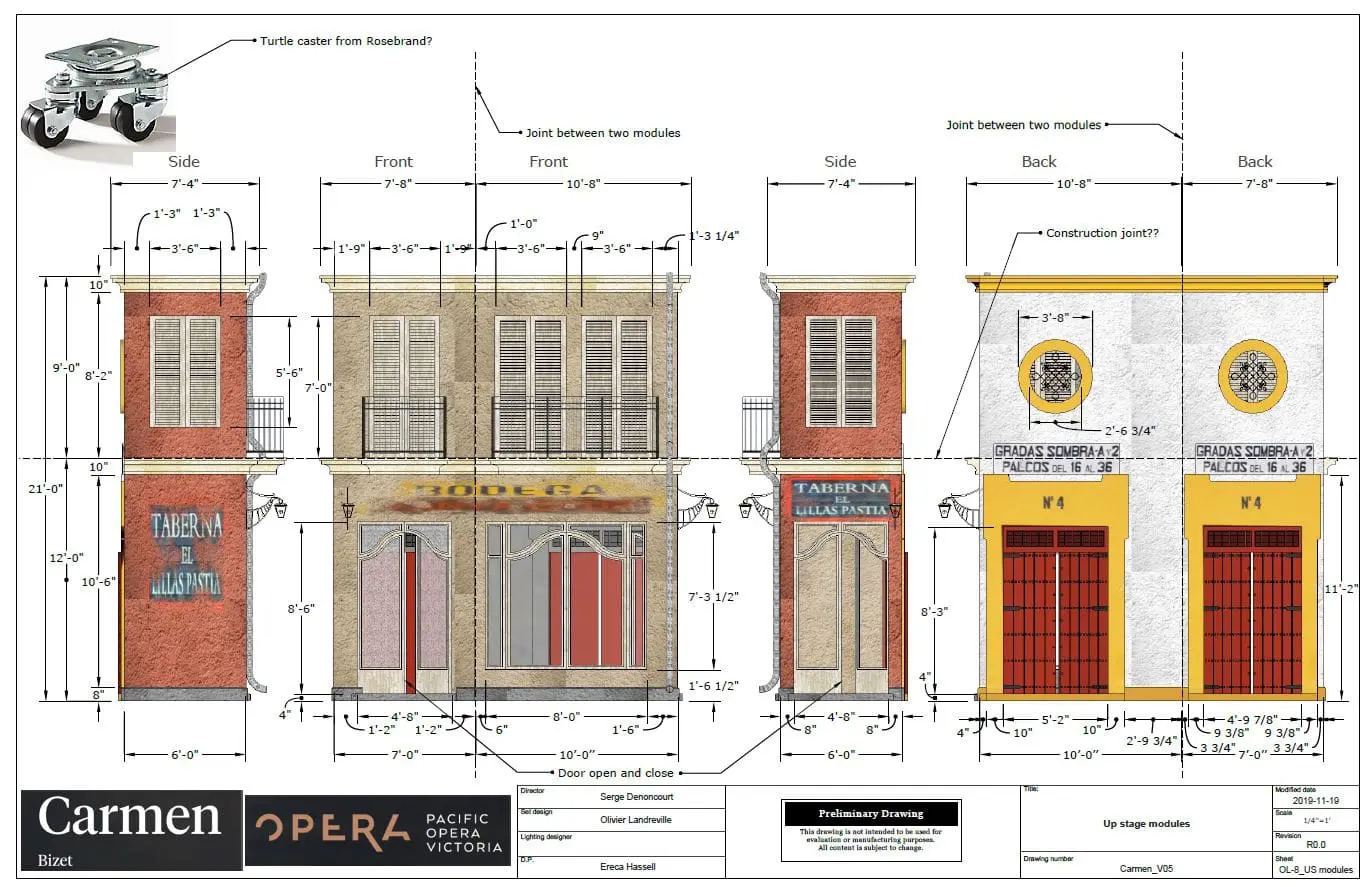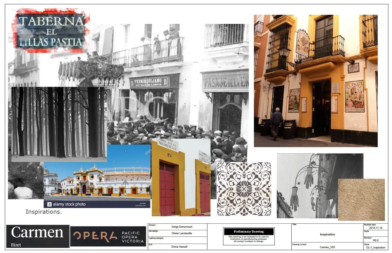 Landreville’s process for creating this ‘new space’ is reflected below; keep reading to see how the POV team went from inspiration photos, to preliminary drawings and finally construction for their upcoming production of Georges Bizet’s Carmen.
