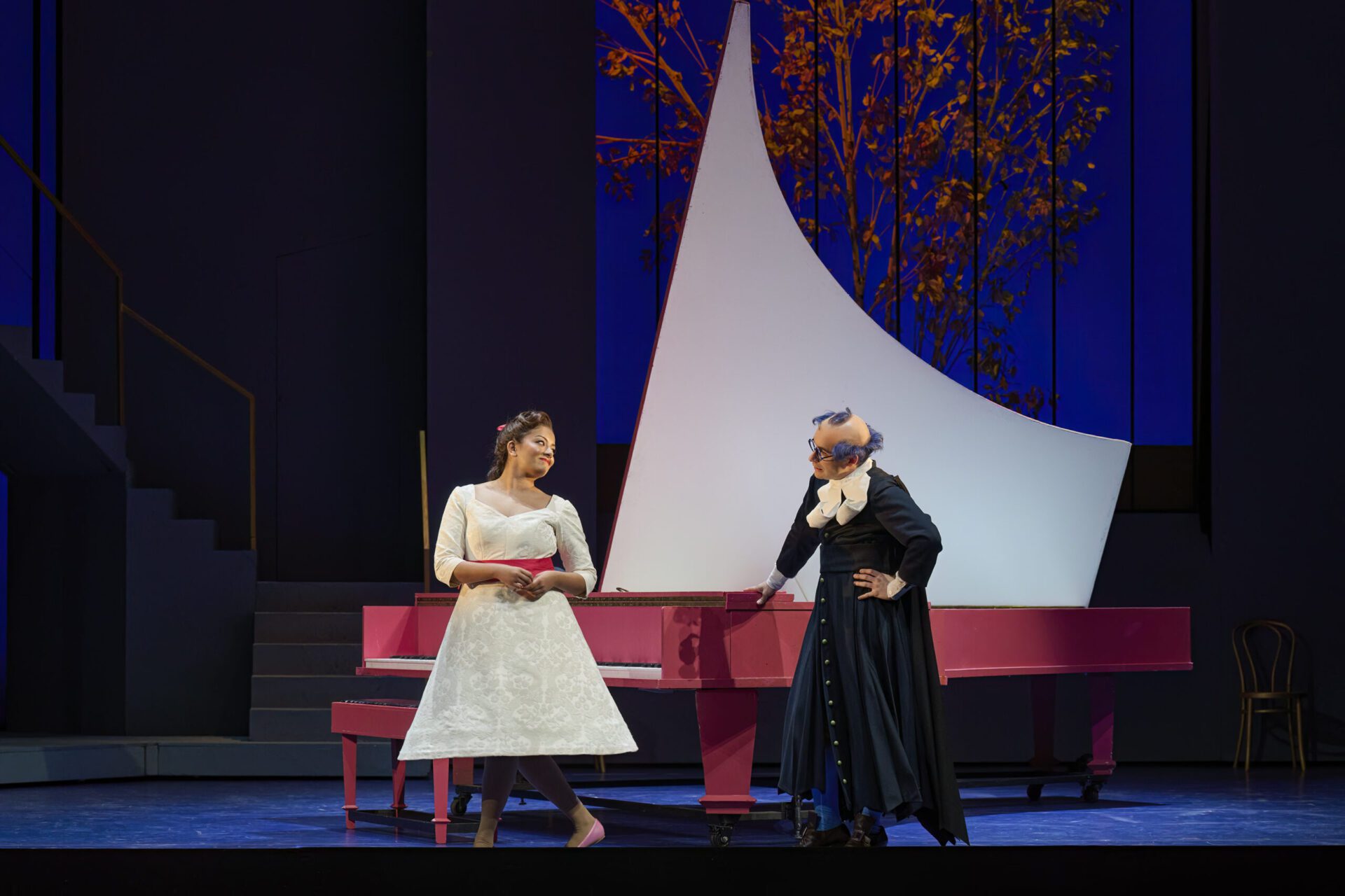 Italian baritone Renato Girolami as Bartolo was a holdover from the 2020 production six years ago, making a big sound and acting up a storm. A surprise was veteran Italian baritone Luca Pisaroni, last seen three seasons ago as Figaro in The Marriage of Figaro. He is now branching out into character roles, and he sang a hugely enjoyable Basilio. Also noteworthy was the COC debut of Canadian mezzo Ariana Maubach as Berta. Maubach seized her single moment to shine by offering a lovely “Il vechiotto cerca moglie.”