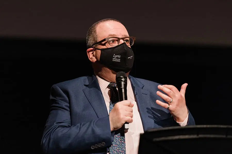 Anthony Freud, General Director, President and CEO of Lyric Opera of Chicago announcing their 21/22 season. Photo: Kyle Flubacker