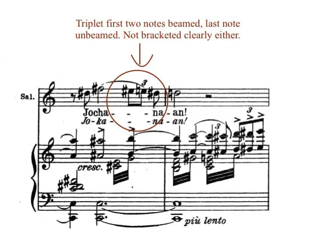 - Beam vocal music in all lyric passages. Singers will be able to learn rhythmic content faster and concentrate our practice time on musical matters and interpreting music. I would usually point the Richard Strauss as a “gold standard” in vocal writing. Strauss along with Mozart, in my opinion, are the two composers with the greatest understanding of vocal lyricism. They know what the voice can do, and showcase it! I am only asking that we don’t perpetuate their notational conventions. But in this one case I say: “don’t be like Strauss or Mozart.” Strauss has a habit in some of his operas to only beam notes if a single syllable is split over two or more notes, and to leave notes unbeamed when each note is sung on a new syllable. It is an impediment in learning his scores. (To be totally fair to Strauss, this could be a Boosey and Hawks editorial issue, but it exists as a notational example of the past that we should not perpetuate in modern music.)