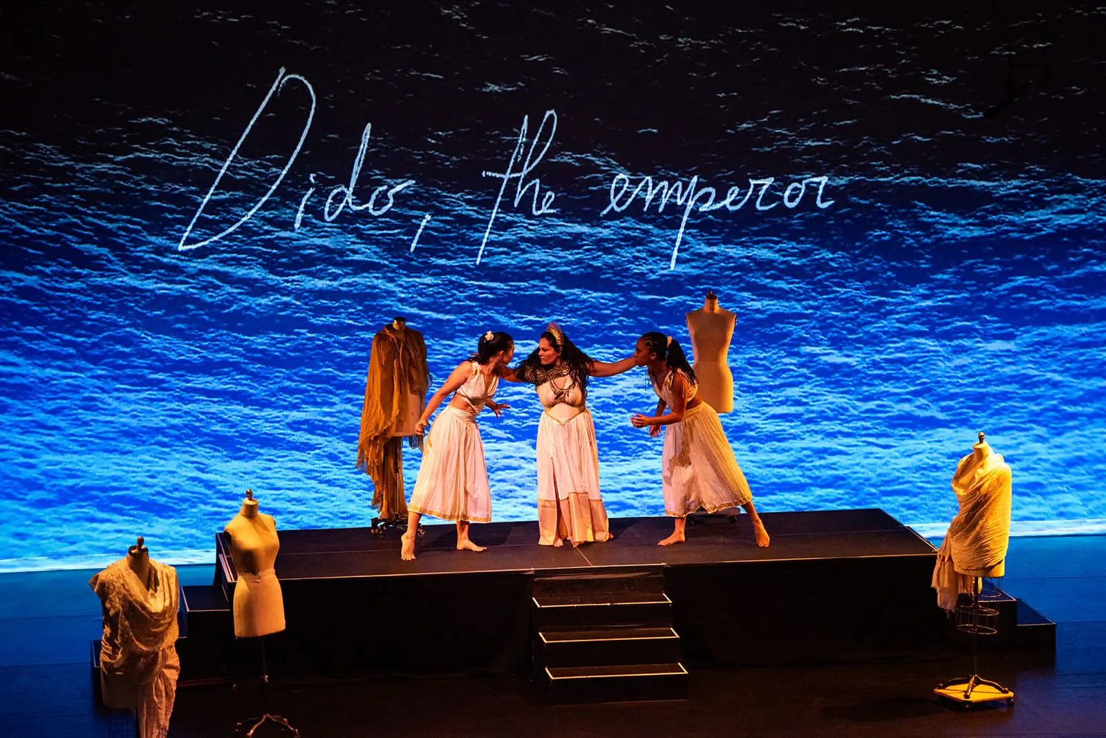 The central concept is to explore the story of Dido, Queen of Carthage, beyond the well-known episode recounted in Book IV of Virgil’s Aeneid and turned into an opera by Nathum Tate and Henry Purcell. There is a single singer; mezzo soprano Cecilia Duarte, representing Dido, backed up by two dancers; Juolin Lee and Marisa Gold (also responsible for the choreography), and projections by Camilla Tassi. A nine instrument ensemble on period instruments is split into two groups at the sides of the stage. The music is a mixture of baroque (mostly 17th century) and works by contemporary female composers. The baroque composers include von Biber, Mudarra, the Eccles brothers and John Dowland, plus, of course, Purcell. We get extracts from Dido and Aeneas and just about all the semi-operas. Jessica McMann, Afarin Mansouri and Robyn Jacob contribute the contemporary element and all three pieces are worthy a listen