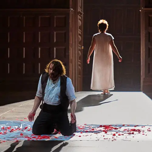 Rigoletto is desperate to hide his daughter, Gilda, from his lecherous employer, the Duke. Little does he know, however, that Gilda has already fallen in love with the Duke in his disguise as a poor student. After Gilda is violated in the Duke’s court, Rigoletto vows revenge, but his daughter overhears his plans and sacrifices herself to save her lover.