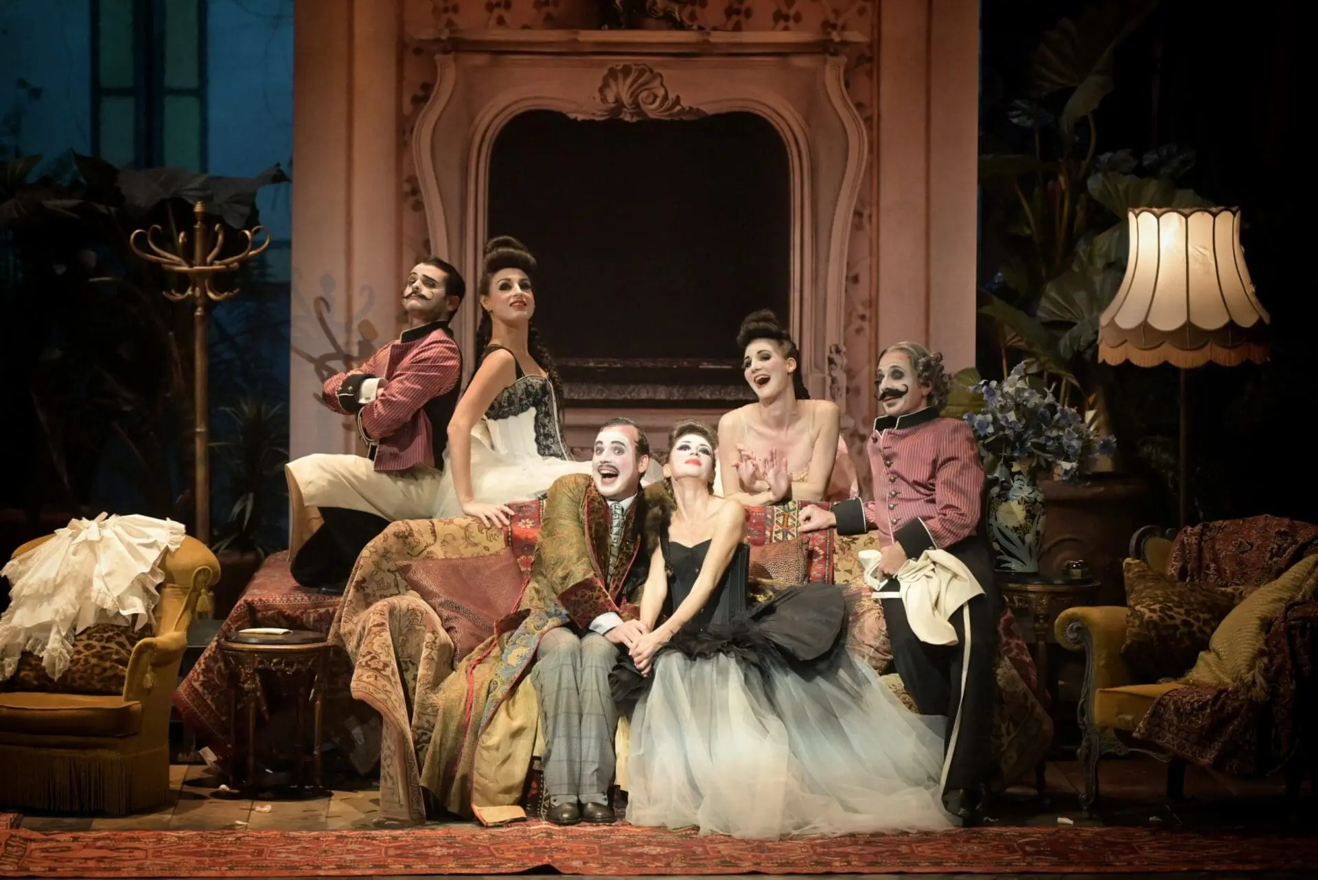 From the first scene, he draws a bittersweet picture of the decadent, festive Paris of the “Troisième République.” The costumes themselves already tell us a lot about the spirit of the period: the grisette, Gabrielle, a glove-maker, in mischievous laces and beads; the elegant demimondaine Métella, in silk and other frivolities. The young dandies Gardefeu, and Bobinet, have a seemingly endless array of disguises and the aristocrats freshly arrived from Denmark, the Baron and Baronne of Gondremarck, are comically decked-out in furs.
