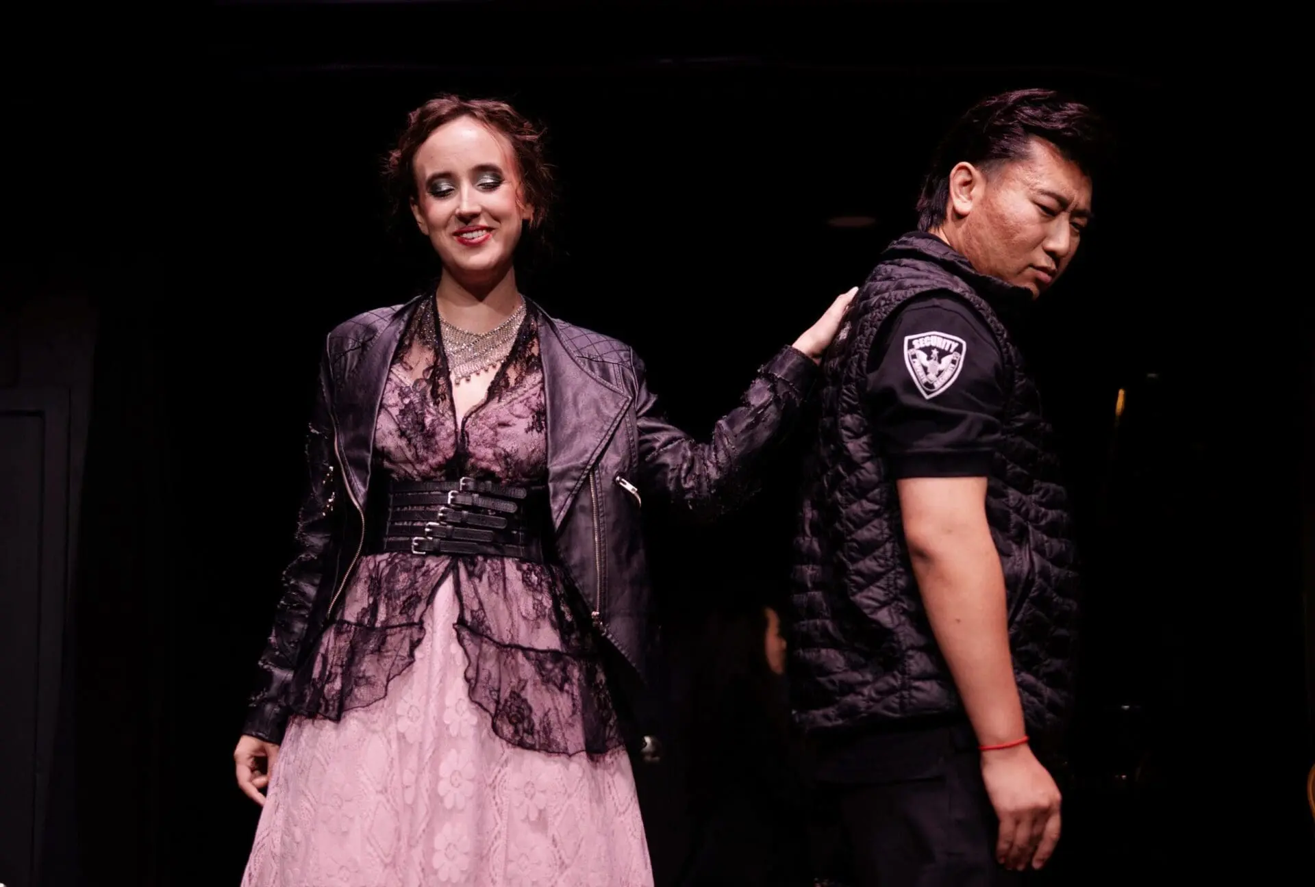The new English libretto works well, adding layered meaning to Don José’s anguish when his superior Zuniga (well played by Matthew Görlitz) suspends him from his job for setting Carmen free, telling him, “Go back where you come from!” The character of Garcia, Carmen’s husband, who appears in the novel but not in Bizet’s opera and was reappropriated by Brook, also appears in Walsh’s production but with new libretto. As played with gangsta cool by Ming-Xuan Chung, when he encounters an agitated Don José, he tells him, “Beat it before you end up face down in a dumpster!”