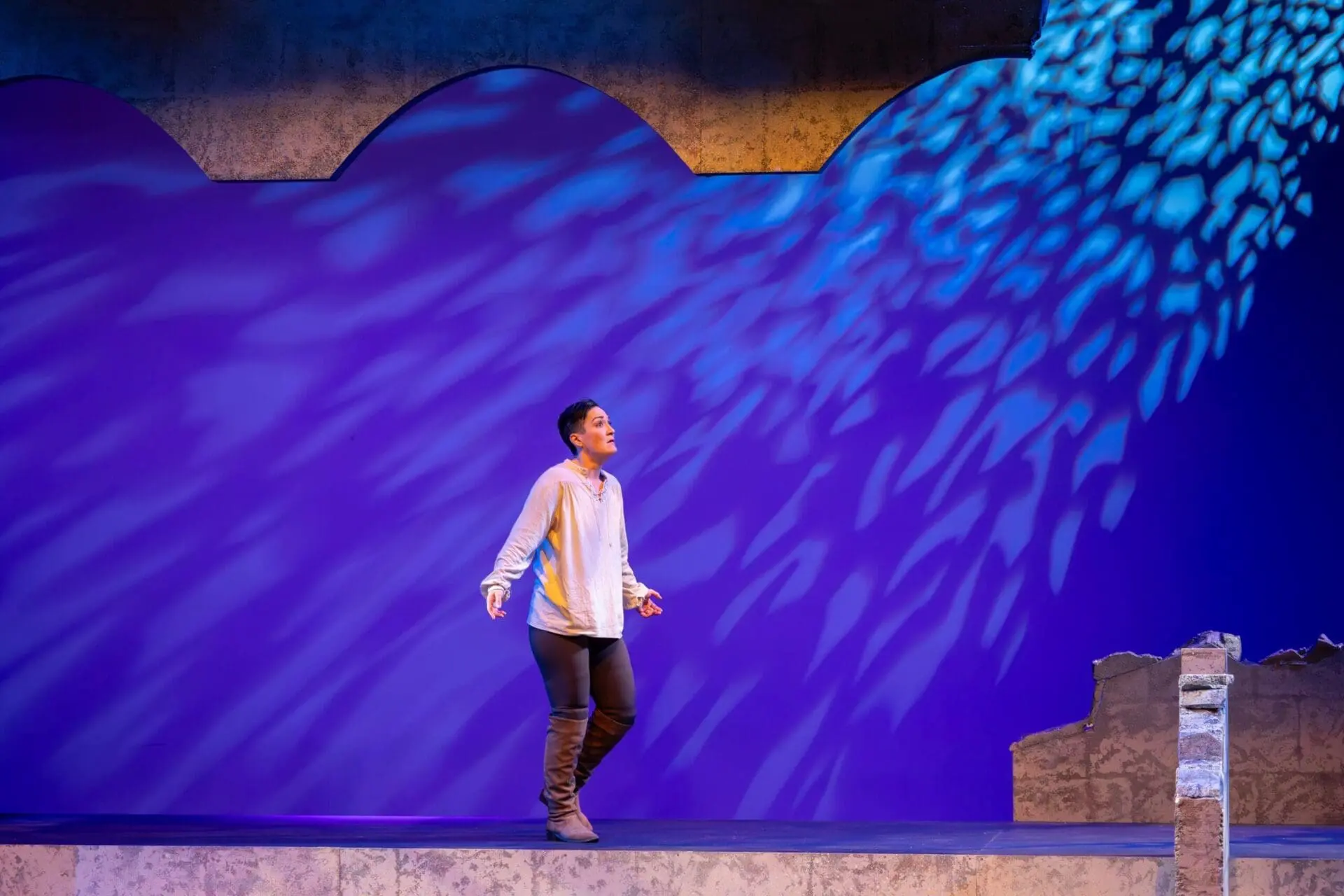 Silence, the character, is sung by Toronto-based soprano Teiya Kasahara, themselves a transgender artist with a history of investigating similar questions of gender identity. Silence has been raised male, but on his wedding night, his reluctant wife Ymma (Lara Ciekiewicz) discovers that the person she’s been forced to marry is, in fact, a young woman. The revelation is news to Silence, and the scene between the two women in bed is one of several comic moments in the opera.