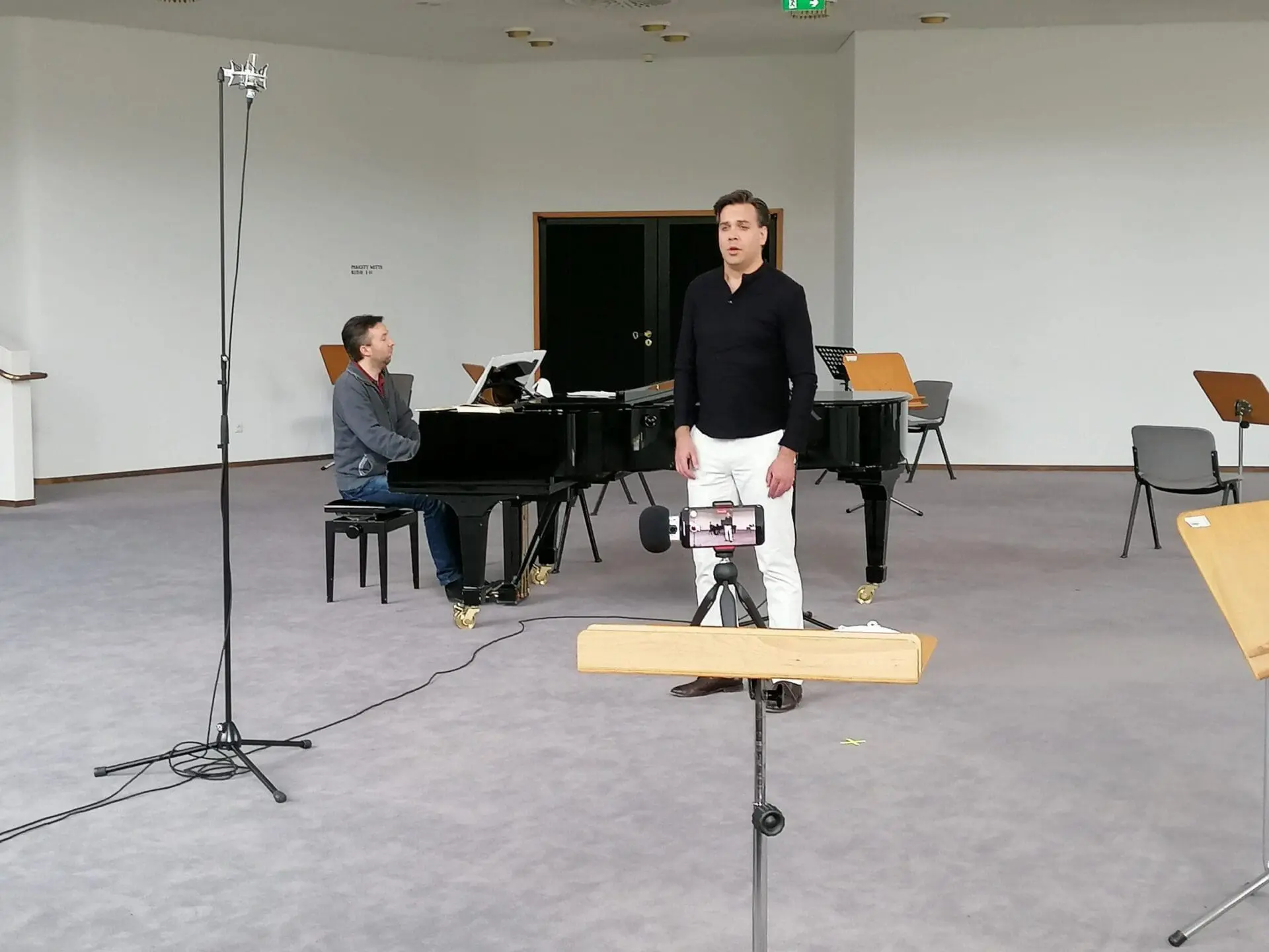 “The idea was, you can’t have an audience in the opera house, but can you take [the opera] to the audience? And some opera houses have done online streaming but not everybody has access to that,” said Canadian baritone Karel Martin Ludvik, who has been a company artist at Aalto Theater since 2016. “There are older people who don’t have access to this technology. So, the thinking was, how can we still bring them opera? And, well, everyone’s got a phone. The sound quality is what you expect its going to be, we’re not a stream. And we’re not a true live performance.