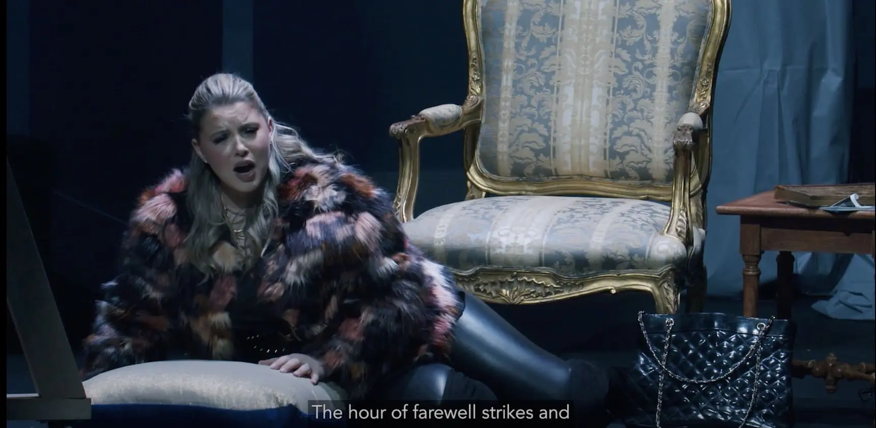 In conclusion I want to comment on the approach taken to producing these streams. I understand that UofT Opera needs to create performance opportunities for their students but I really have to ask whether filming shows staged under Covid conditions is the way to go. Might it not have been better to go all the way and make a series of films that abandon the artificiality of a proscenium arch and the need to reuse sets for multiple productions? Chintz curtains may make an effective backdrop for Des Grieux’ country house but they look distinctly odd behind Don José and Escamillo. Soundstreams, Tapestry Opera and other companies with limited resources have shown that it’s possible to do highly effective location shoots under Covid conditions as UofT Opera does here with the Hoiby piece. For my money, location filming has produced far more compelling material than streams staged under prevailing Covid safety conditions and I really wish that UofT Opera had gone (further) down that road.