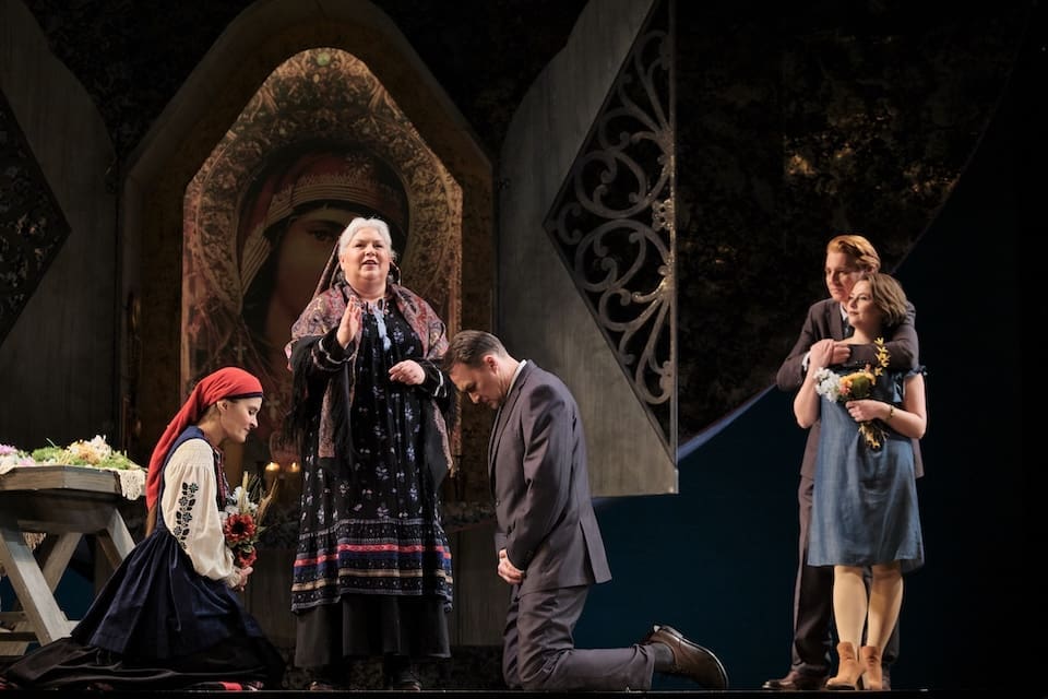 According to Egoyan, the production design was meant to blend past and present, and Debra Hanson (the costume designer for Schitt’s Creek) landed on a mix of folkloric clothing and modern dress that proved very effective. I could have done without Števa and Karolka taking selfies in the third act, but otherwise the sets, lights and staging worked together to support the action with clear but unobtrusive symbolism.