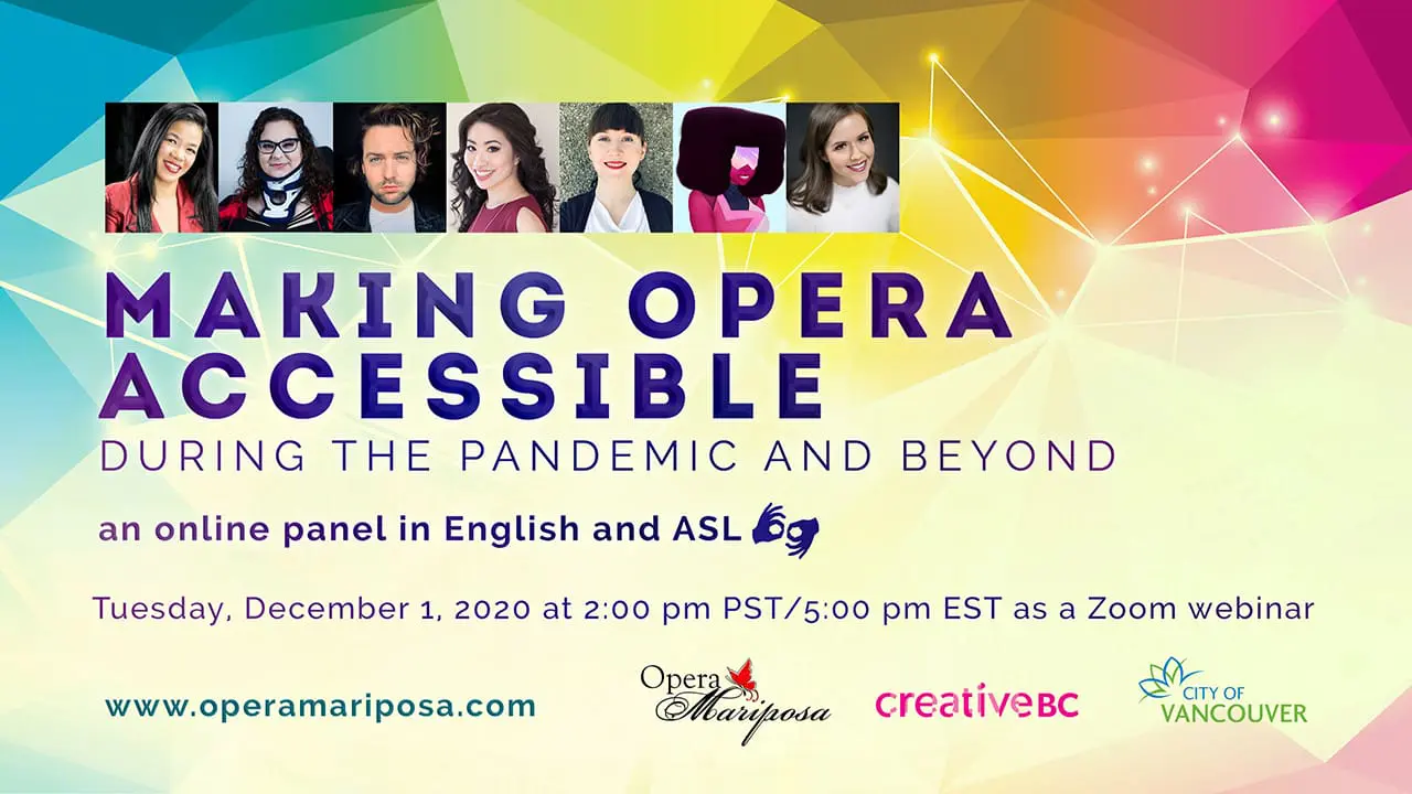 On Dec. 1st, Opera Mariposa is creating a platform for Deaf and disabled perspectives in opera via an online panel discussion on accessibility, inclusion and pursuing live music safely during COVID-19.