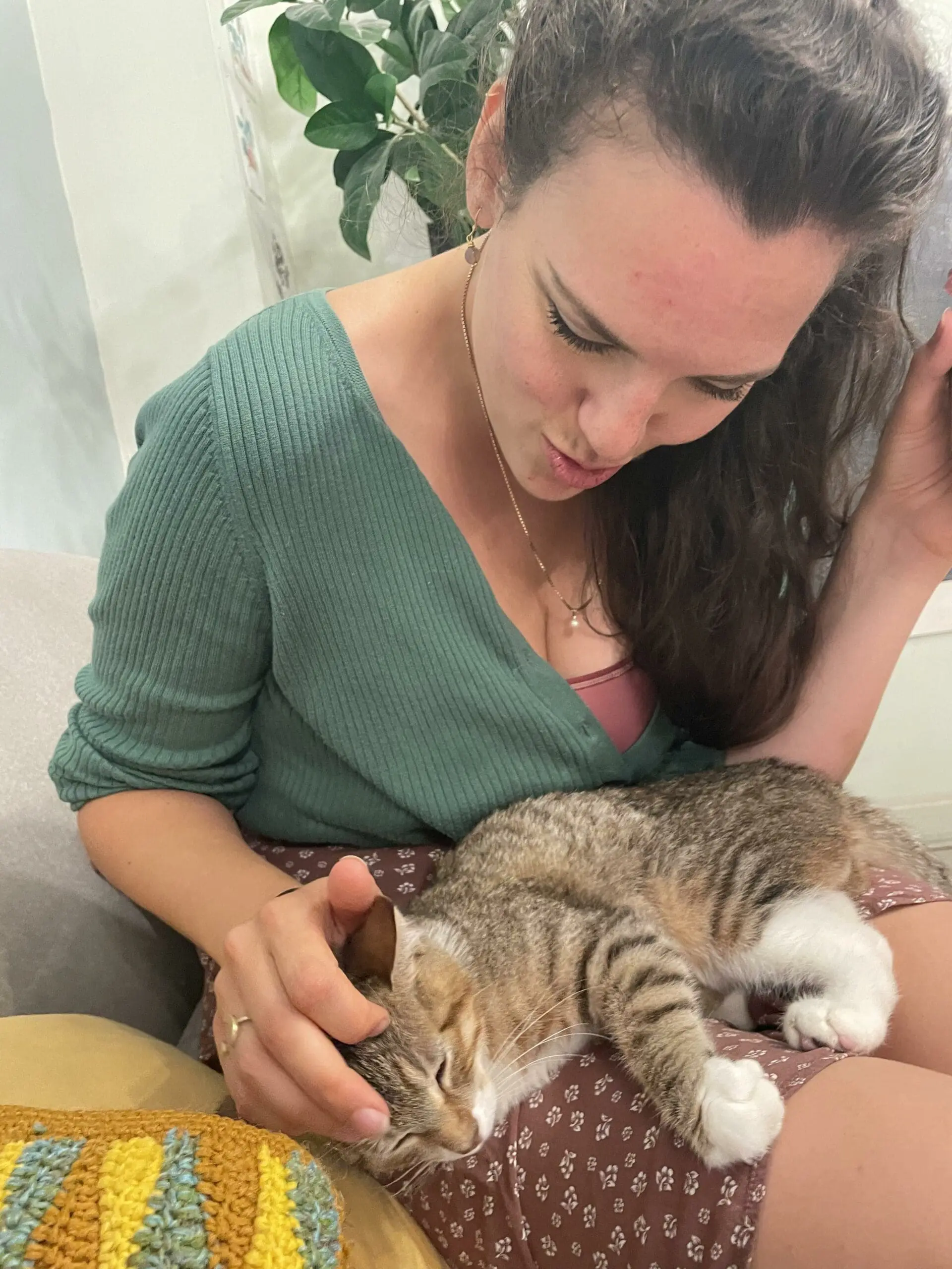 Kirsten MacKinnon cozied up at home with one of her two kittens Ⓒ Kirsten MacKinnon