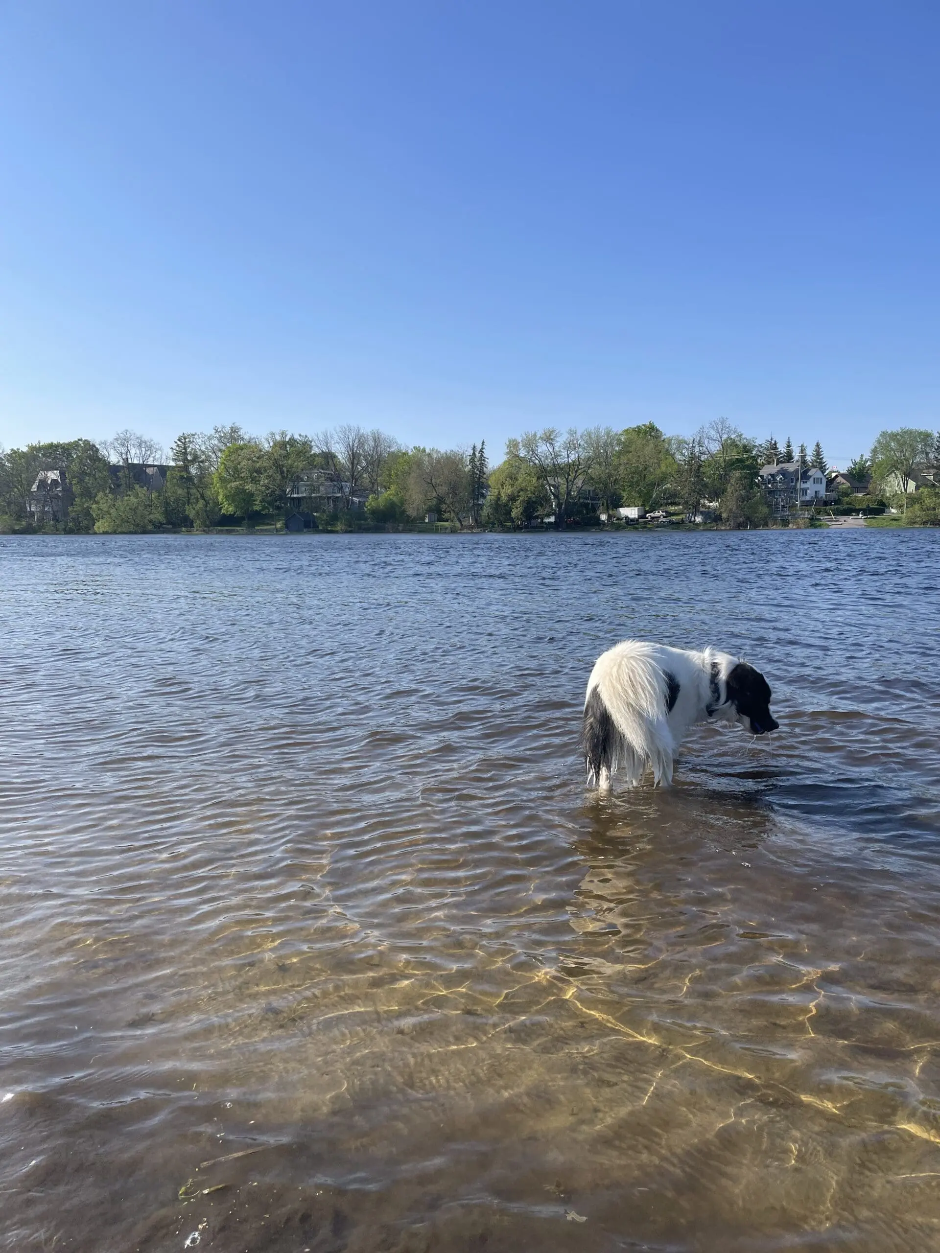 Asselin’s pup Teddy wades into the Mississippi River Ⓒ Mireille Asselin