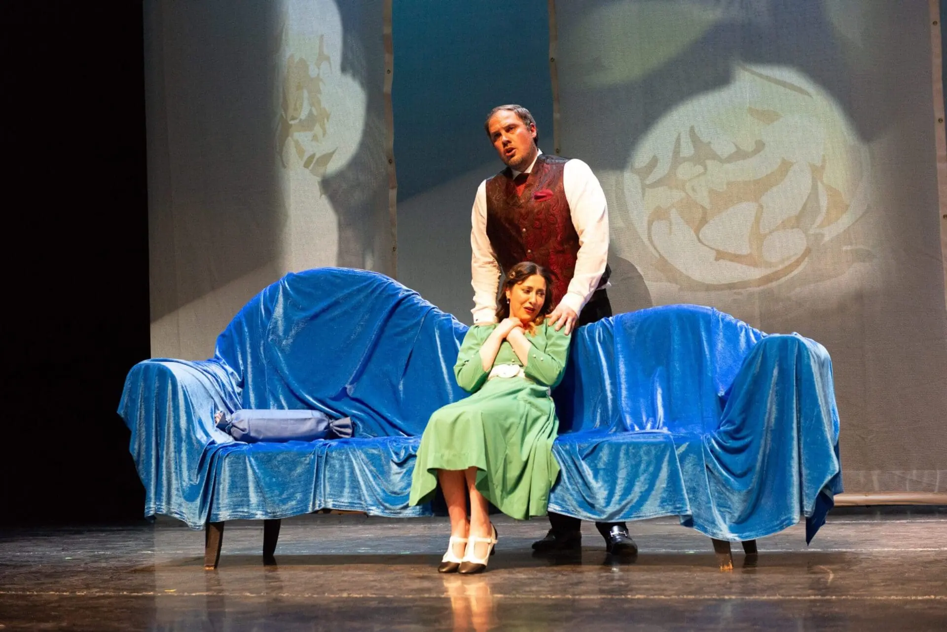 Violetta (Lauren Estey) and Germont (Diego Catala) come to terms about the future of her affair with Alfredo