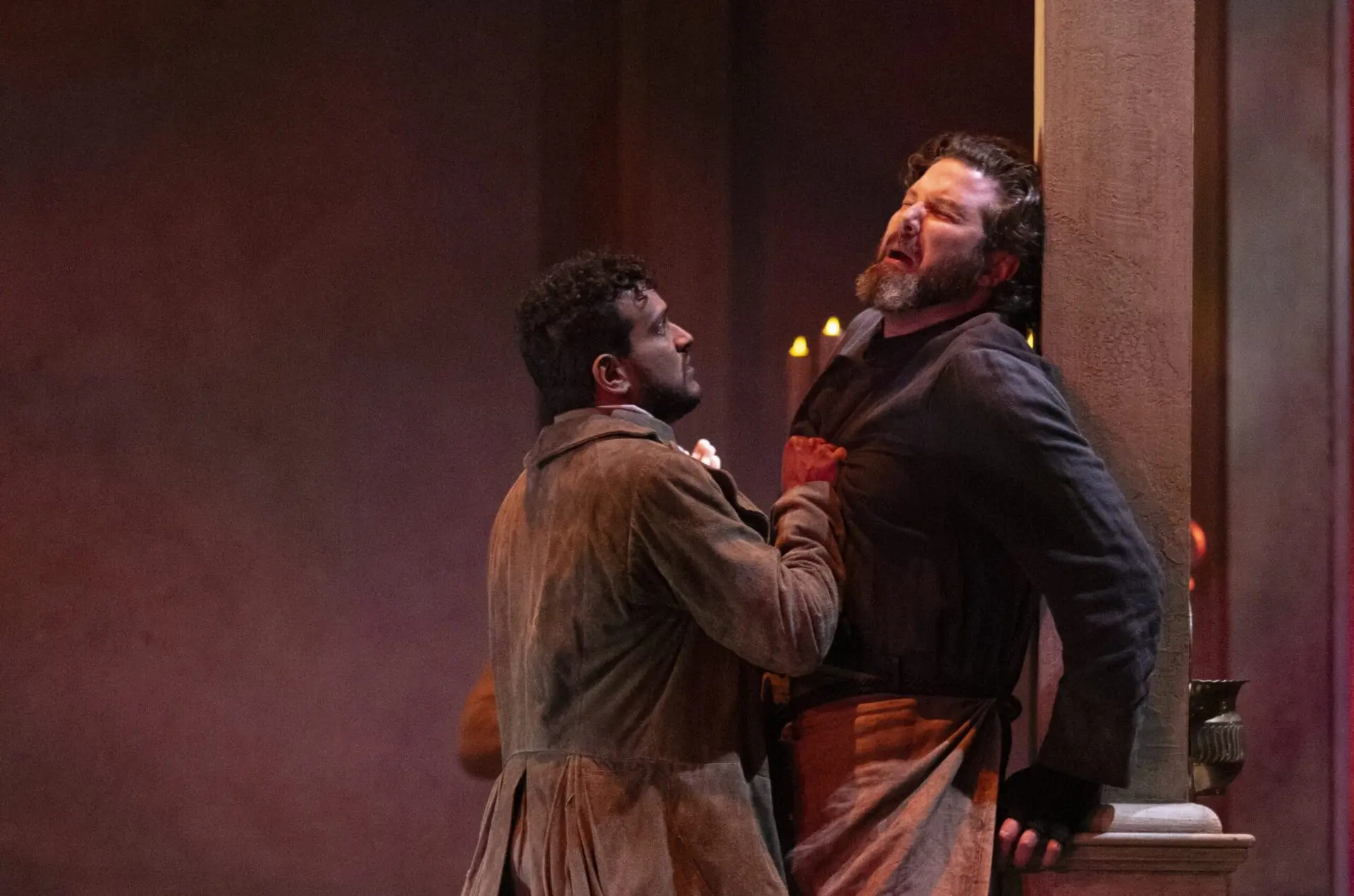 Asitha Tennekoon as Spoletta with Peter Monaghan as Sacristan in Puccini’s Tosca