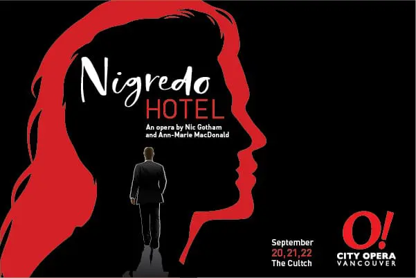 Nominated for eight Dora Mayor Moore Awards after it premiered in Toronto in 1992, Nigredo Hotel is considered one of the most successful and widely performed Canadian operas ever. It’s fascinating libretto, written by celebrated Canadian novelist Ann-Marie Macdonald draws on concepts from alchemy and Jungian psychology, set to the dramatic, jazz-heavy score composed by the late Nic Gotham.