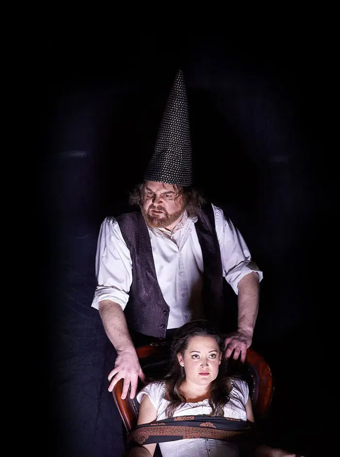 The concept invites admiration for its probing intellectualism but this comes at a price—by exposing the hypocrisy of Victorian attitudes towards women who are unable to satisfy male expectation either as angels or whores, Alden diverts attention away from the opera’s central father/daughter relationship. Rigoletto may be a cruel jester, mocking the sycophants who populate his master’s court, but he also deeply cares for his daughter Gilda, obsessively keeping her under lock and key at home, lest she fall into the hands of the Duke. The audience needs to viscerally connect with this relationship if they are to feel any sympathy when Rigoletto unwittingly orchestrates his own daughter’s murder.