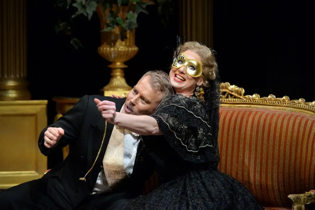 Adam Fisher (Eisenstein) and Lara Ciekiewicz (Rosalinda) in TOT’s Die Fledermaus. Photo: Gary Beechey, BDS Studios