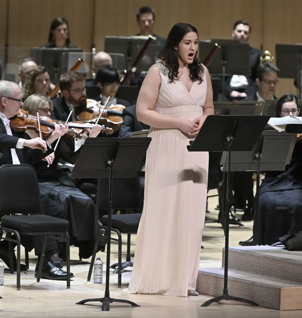 Nevertheless, Davis (who is TSO Conductor Laureate and Interim Artistic Director) took a workmanlike and engagingly even-handed approach, emphasizing geometric horns and buzzsaw strings, each section jostling in a fashion that nicely reflected the power battles inherent to the work. This was very much a concert performance, with no theatrical elements within the presentation, and artists performing basic perfunctory gestures, but it was no matter, for within the glowing tones lay a square focus on momentum. Right from the first thrumming notes, which brimmed with buzzing basslines, Davis engineered a keen, relentless drive that highlighted the work’s cinematic scope. The pace didn’t allow the TSO much in the way of leaning into phrases or exploring varied textures, but the upshot was an orchestrally attentive approach where the spotlight largely stayed on soloists Lise Davidsen (soprano), Brindley Sherratt (bass), and Simon O’Neill (tenor), all making their TSO debuts.