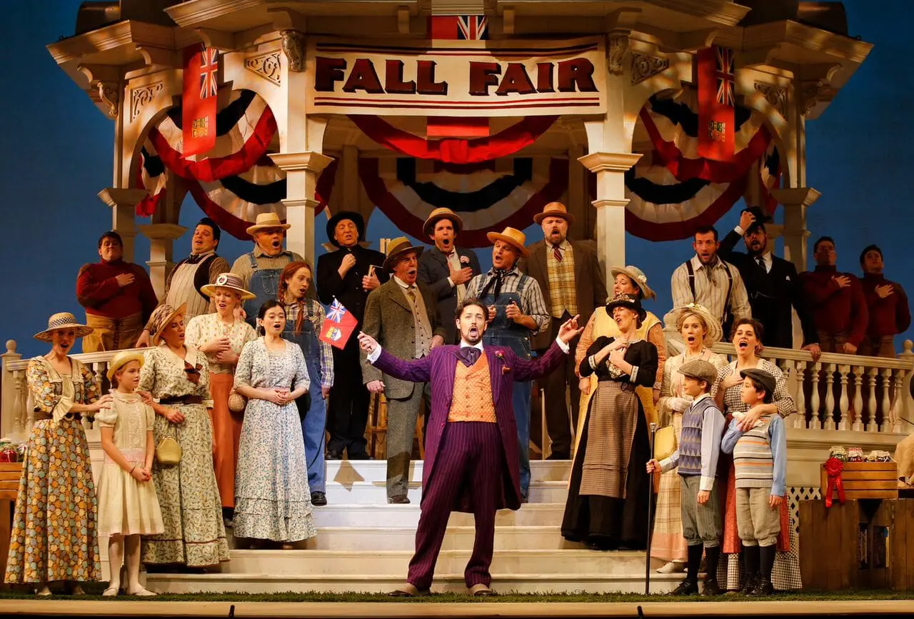 The rural Canadian town costumes of Martin Pakledinaz and Amanda Seymour (revival costume designer) were spot on and Allen Moyer’s straightforward, effective set made an unobtrusive backdrop to the stage shenanigans. Corner’s direction never allowed a comedic moment to languish, yet allotted ample space for Haji to maximize his famous “Una furtiva lagrima”—an aria that should never be hurried—for which the audience had been waiting over two hours.