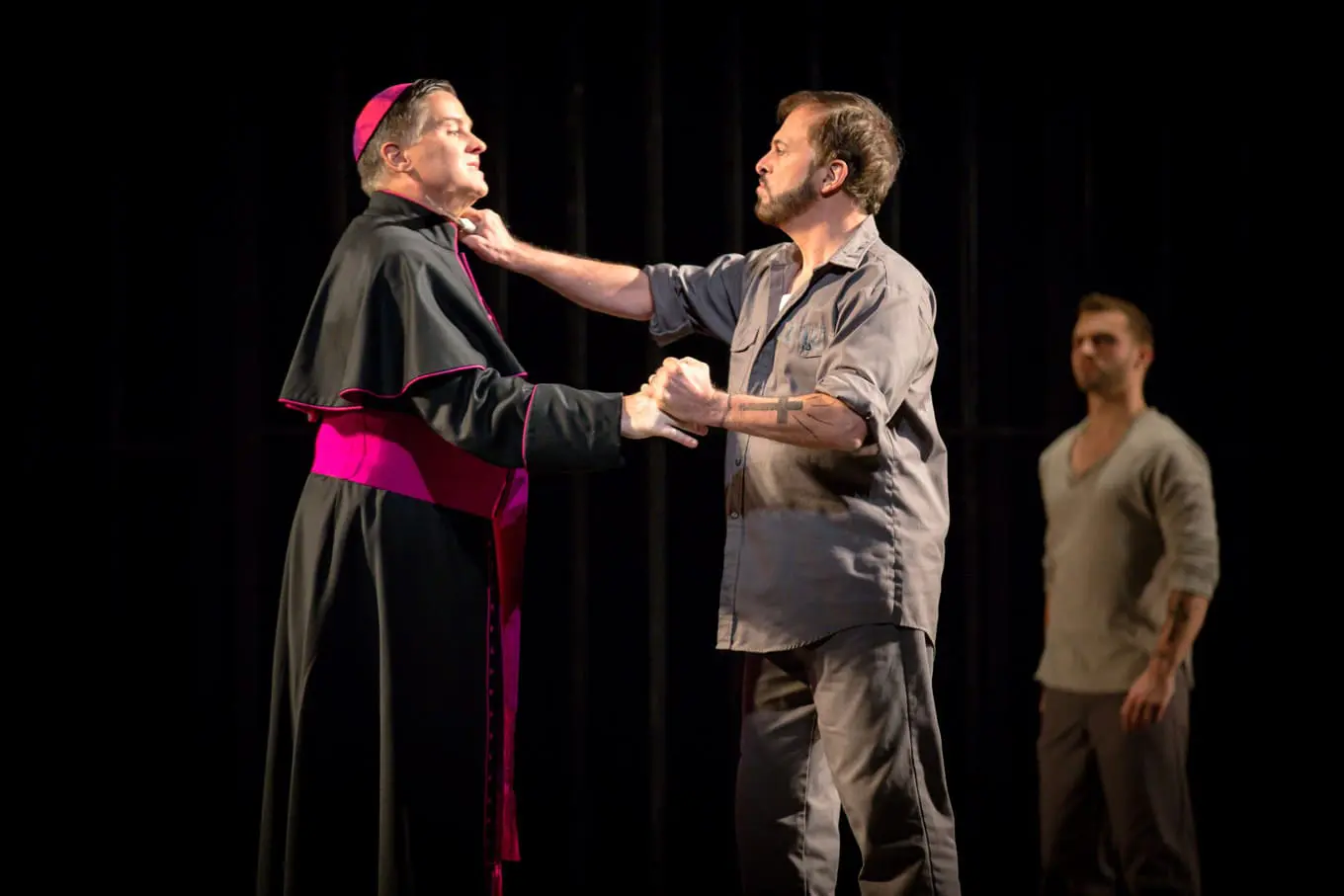 The principals were all solid, although Richer began a little tentatively. Gietz as the old Bishop in the opening and closing scenes sang with force and high emotion as he faced his past, his sexual dishonesty, and quite possibly his suicide at the end of the piece.