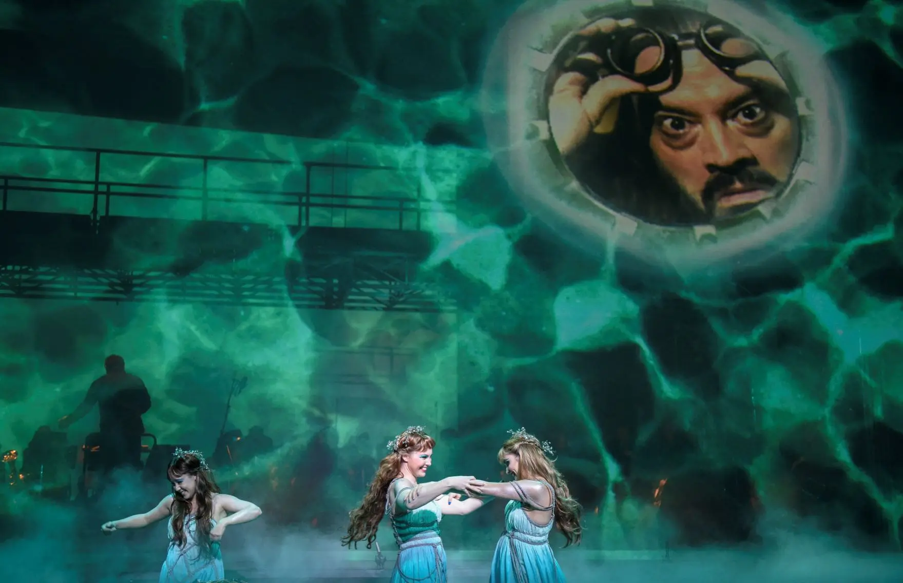 Andrea Nunez (Woglinde),Carolyn Sproule (Flosshilde) and FlorenceBourget (Wellgunde) in L’Opéra de Montréal’s Das Rheingold. Photo: Yves Renaud.