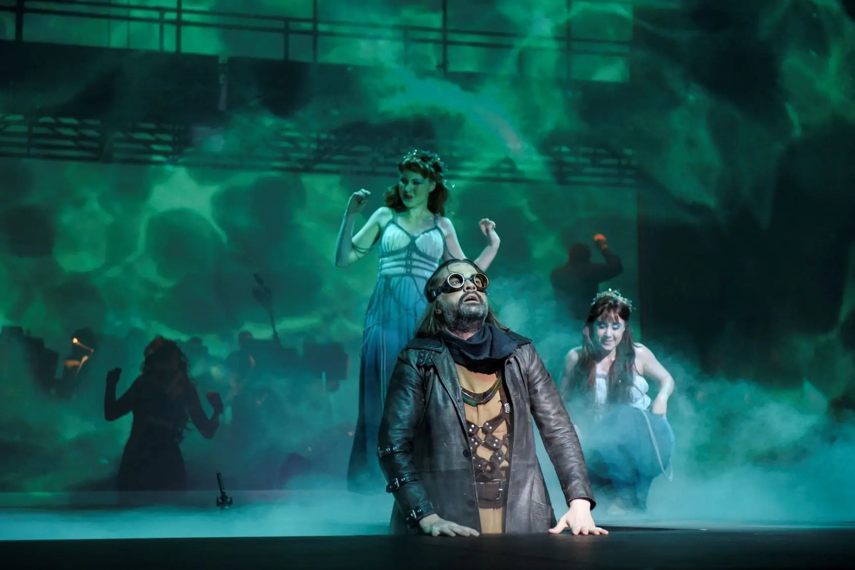 L’OdeM has brought in Brian Staufenbiel’s 2016 Minnesota Opera Rheingold production. His vision borrows liberally from steampunk—all goggles and gears—and uses David Murakami’s clever, animated projections of water, caverns, flickering circuit boards, and a mist-shrouded, Gothic Revival Valhalla to suggest a world where science and nature are at war. It’s an imaginative, effective concept, but aesthetically it pinballs between Tolkien and Jules Verne, like someone spliced random scenes from Thor: Ragnarok into City of Lost Children. There have been worse mashups in the Ring’s history.