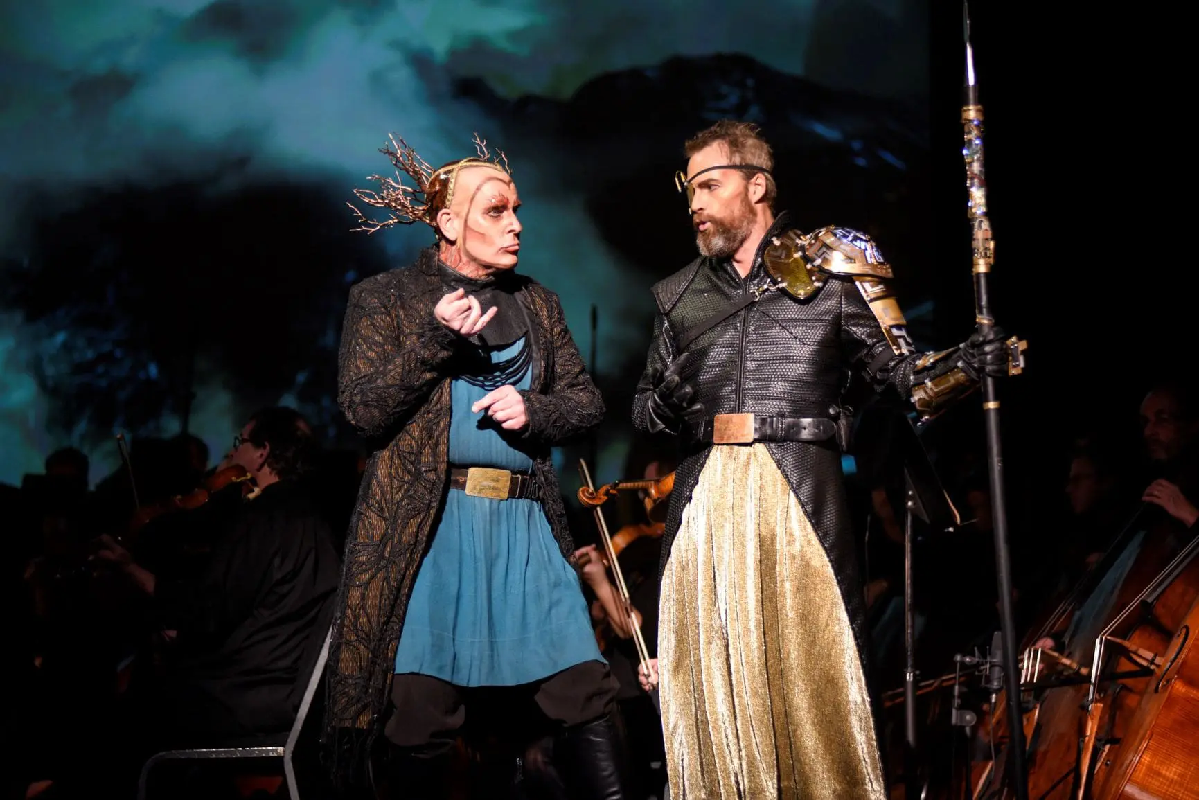 Mezzo-soprano Aidan Ferguson was a jealous, anxious Fricka. Soprano Caroline Bleau’s Freia was correct, if a little lightweight and vocally indistinct. But it was mezzo Catherine Daniel’s queenly, wise Erda who won the goddess prize. Her spectacular costume—she was crowned with a tall, glittering green headdress of twining branches—didn’t hurt.