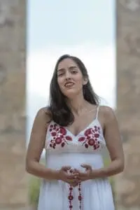 Co-created by Corner and stage director Sawyer Craig, Lost Voices featured six sopranos joined by as many collaborative pianists tucked away in the nooks and crannies of the basilica, breathing life into six ‘forgotten’ female protagonists across the centuries. It’s a clever concept that mostly worked despite some logistical issues during the opening matinee, including several awkward pauses and the perils of modern day air traffic during the two al fresco scenes.