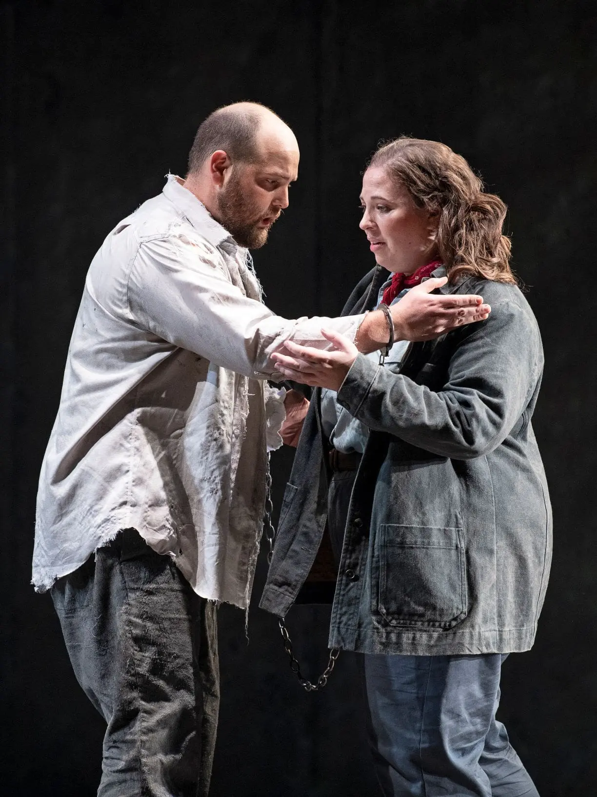 Brent Turner (Florestan) and Aviva Fortunata (Leonore/Fidelio) in Pacific Opera Victoria’s Fidelio. Photo: Emily Cooper