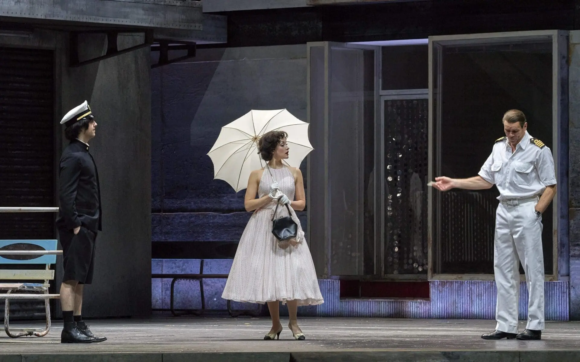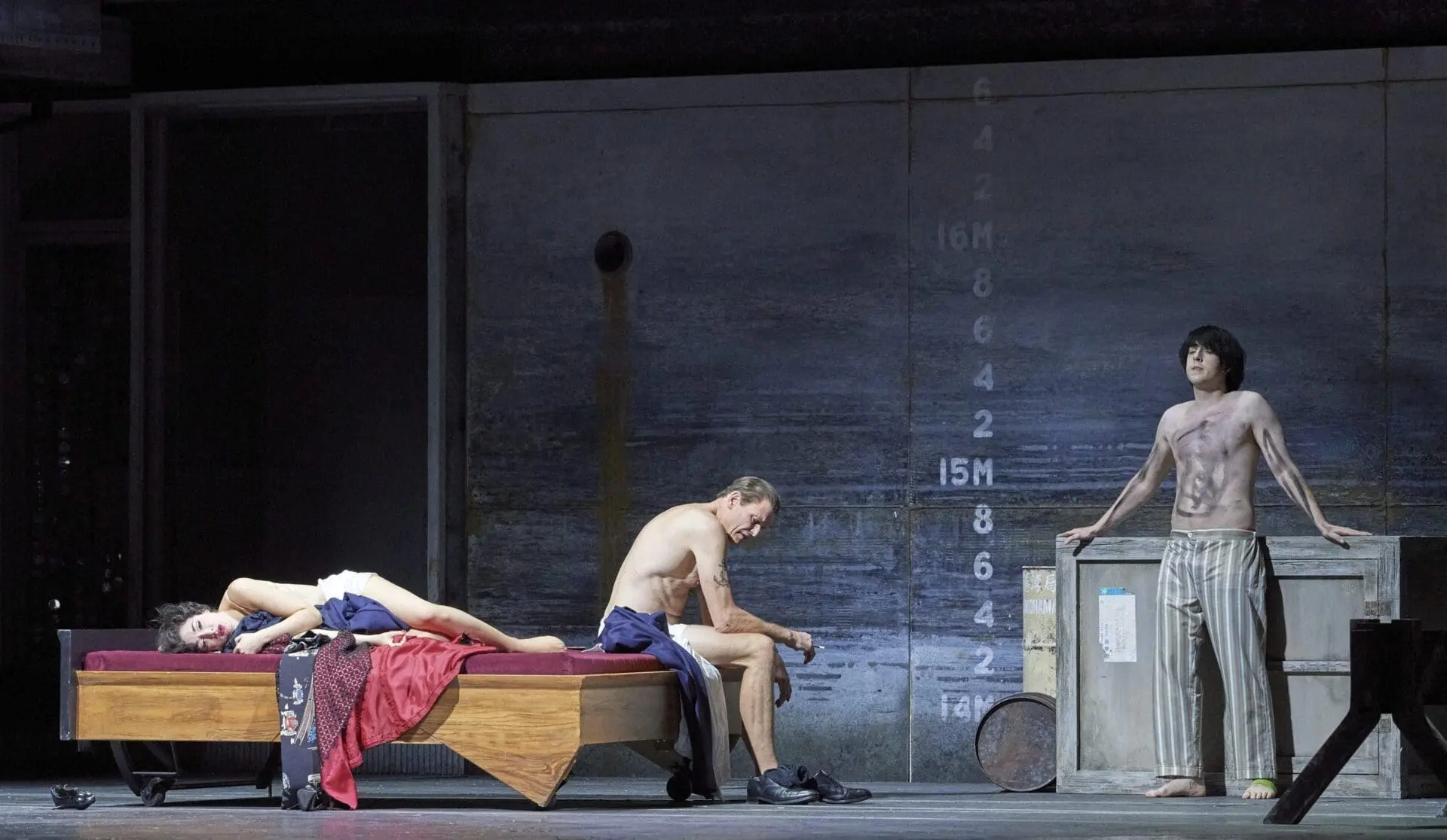 (L-r): Vera-Lotte Boecker (Fusako), Bo Skovhus (Ryuji) and Josh Lovell (Noboru) in Vienna State Opera’s Das verratene Meer. Photo: Wiener Staatsoper/Michael Pöhn