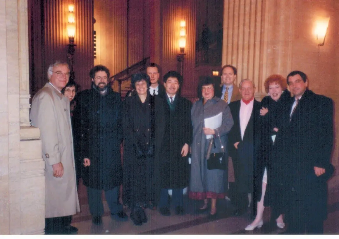 Wayne Gooding with friends at Lyric Opera of Chicago c. 1997 (including 3rd from left, Michael Hutcheon & 4th from left, Linda Hutcheon who will present Gooding with his Opera Canada Award on October 22; OC writer Joseph So is at centre) Photo: Courtesy Joseph So