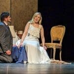 It is unfathomable that a singer who specialises in Puccini heroines and who has performed on five continents – including at Carnegie Hall and in Puccini’s villa – had yet to debut Tosca. The anticipation was palpable, and Vetere held nothing back. The moment she stepped on stage, she inhabited the character physically and vocally in a way that was almost eerie. She embodied Tosca’s innocence, artistry, jealousy and passion throughout the evening, growing from a flirtatious lover to the original “#MeToo” girl. Her “Vissi d’arte” was a study in superb vocal technique with its sustained pianissimos and emotive phrasing. That she sang this aria while sitting cross-legged on the stage added to the heartbreaking feel of youthful innocence and isolation. In Tosca’s final moments, Vetere unleashed a powerful upper register that proclaimed her character’s desperation and pain.