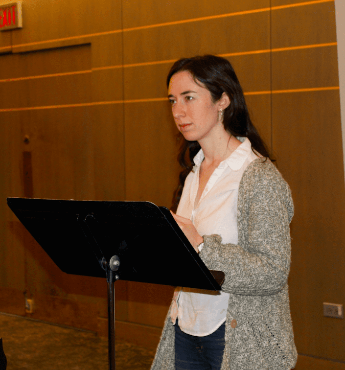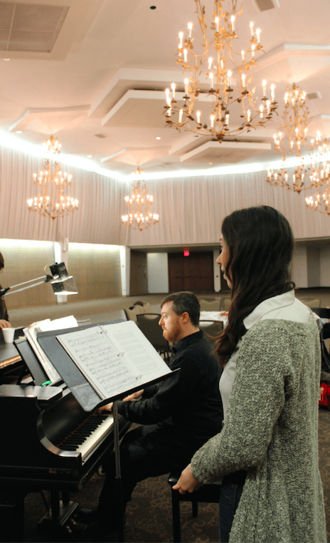 Sara Schabas at Beth Tzedec Congregation rehearsing for The Electric Bond Opera Ensemble’s, Another Sunrise and Farewell, Auschwitz. Photo: Sahar Khan