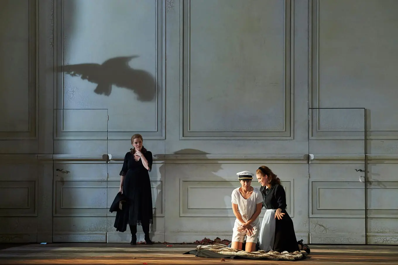 Left to right: Erin Wall (The Countess), Emily Fons (Cherubino) and Jane Archibald (Susanna) in the Canadian Opera Company’s The Marriage of Figaro, 2016. Photo: Michael Cooper