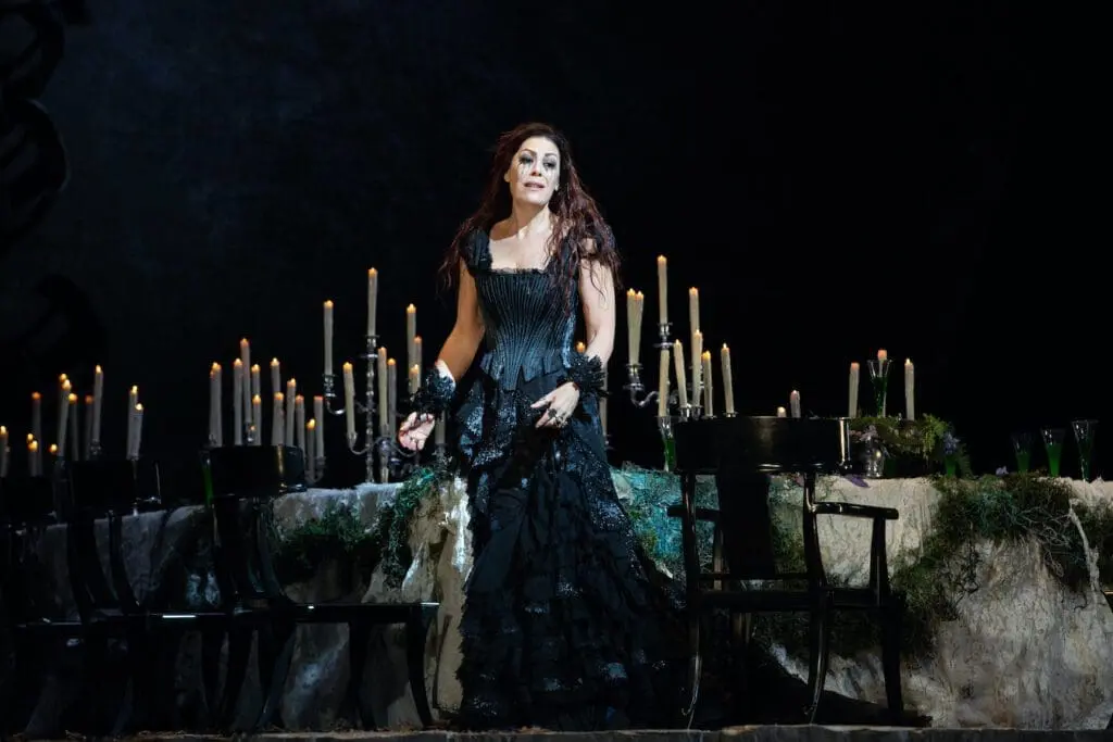 That’s the version the Met has employed for the opera’s highly belated, season-opening company premiere (I heard the third performance, on October 5), and—surprise!—I was vastly impressed and entertained: for the first time, in David McVicar’s worthily theatrical staging and Carlo Rizzi’s masterful musical direction, Medea coalesced as both a blazing star vehicle and the score so deeply admired by Beethoven and other prominent contemporaries of Cherubini’s. The blaze, of course, was ignited by the production’s undisputed raison d’être, Sondra Radvanovsky, giving one of the most fully immersive performances I’ve ever seen on an opera stage. Looking spectacularly, sinuously disheveled in Doey Lüthi’s bedraggled black evening gown, she moved with a dancer’s expressive eloquence and plastique, and no corner of Medea’s emotional makeup seemed unexplored. Vocally, though, the role isn’t an ideal fit: it’s written for a voice that builds from the bottom up, not, like hers, from the top down. The high notes filled the house thrillingly, as they always do, and she held nothing back, but many of the lower-lying passages lacked presence and impact—Radvanovsky, who can trace a Verdian line with such fine precision, had a harder time dealing with the seesawing registers of Cherubini’s. (Callas apart, Eileen Farrell—in concert and on record the other noted Medea of the 1950s—seems to me the vocal ideal.) But these are after-the-fact observations; whenever Radvanovsky was onstage—which, from her much-anticipated entrance on, is pretty much the entire opera—I was transfixed.