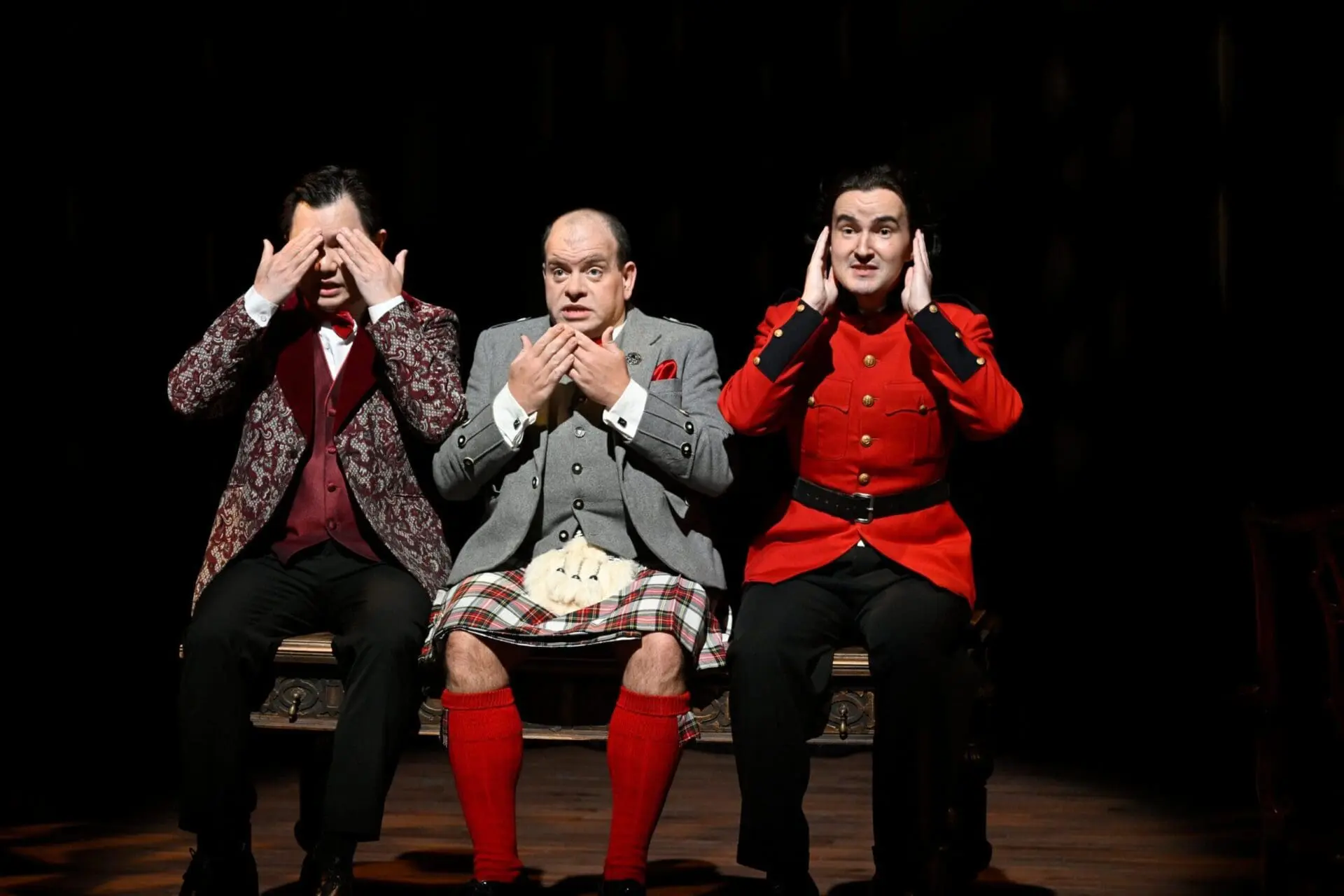 Artistic director Guillermo Silva-Marin began the performance by greeting a cheering audience wearing a Blue Jays’ baseball cap while wishing the team “toi toi toi.” This sense of fun pervaded the entire evening, as young and old took in Silva-Marin’s revised adaptation of The Mikado: the setting was in Burlington, the characters’ names were modernized (for example, the Mikado became Prime Minister, Pooh-Bah became Lord Arthur Blimp), and Japanese robes were replaced with red serges. The music remained unchanged, but lyrics were hilariously updated and dialogue included references to “e-transfers” and an “elder orange oligarch.”