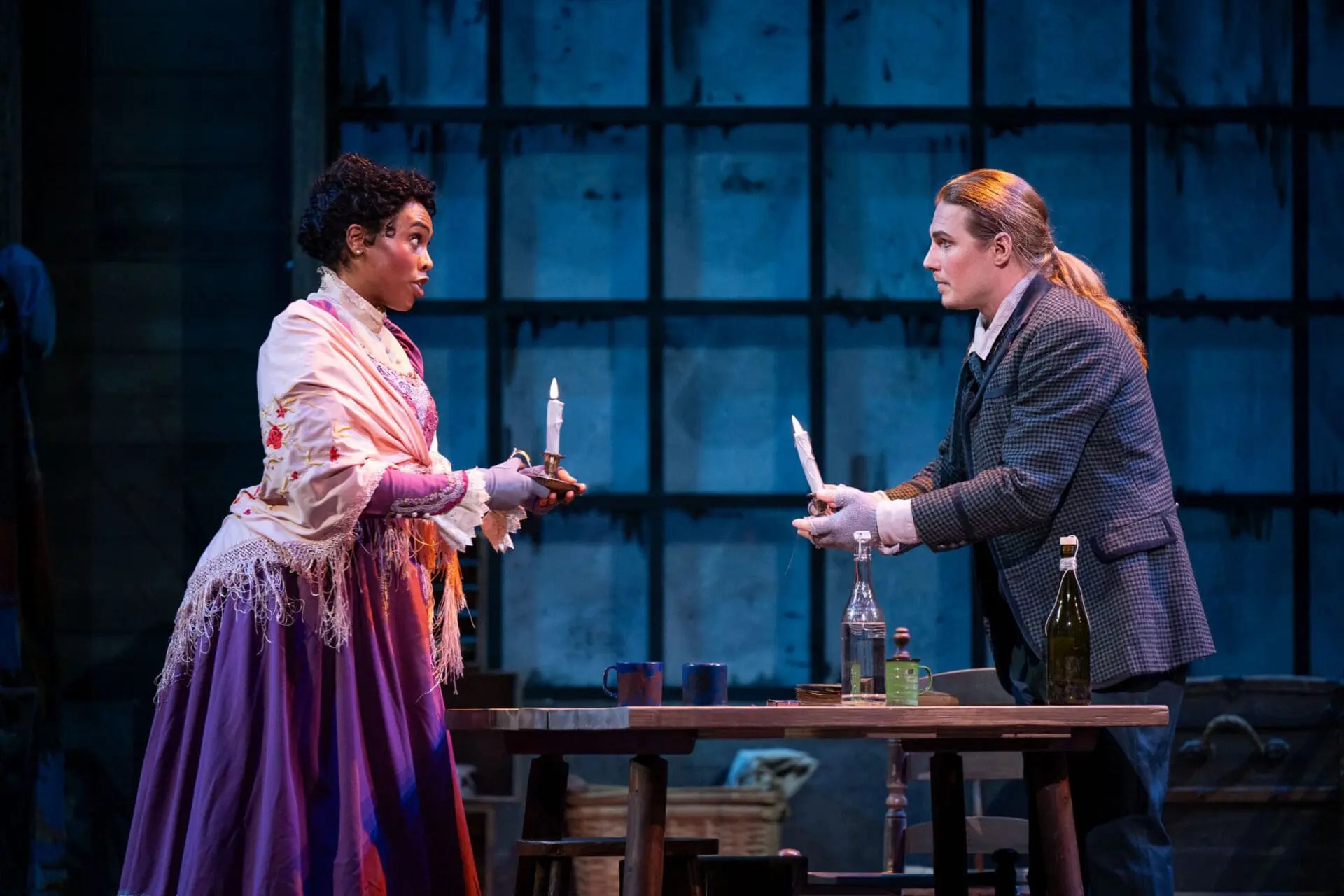 Jonelle Sills and Matthew White in the famous first-act meeting between Mimì and Rodolfo