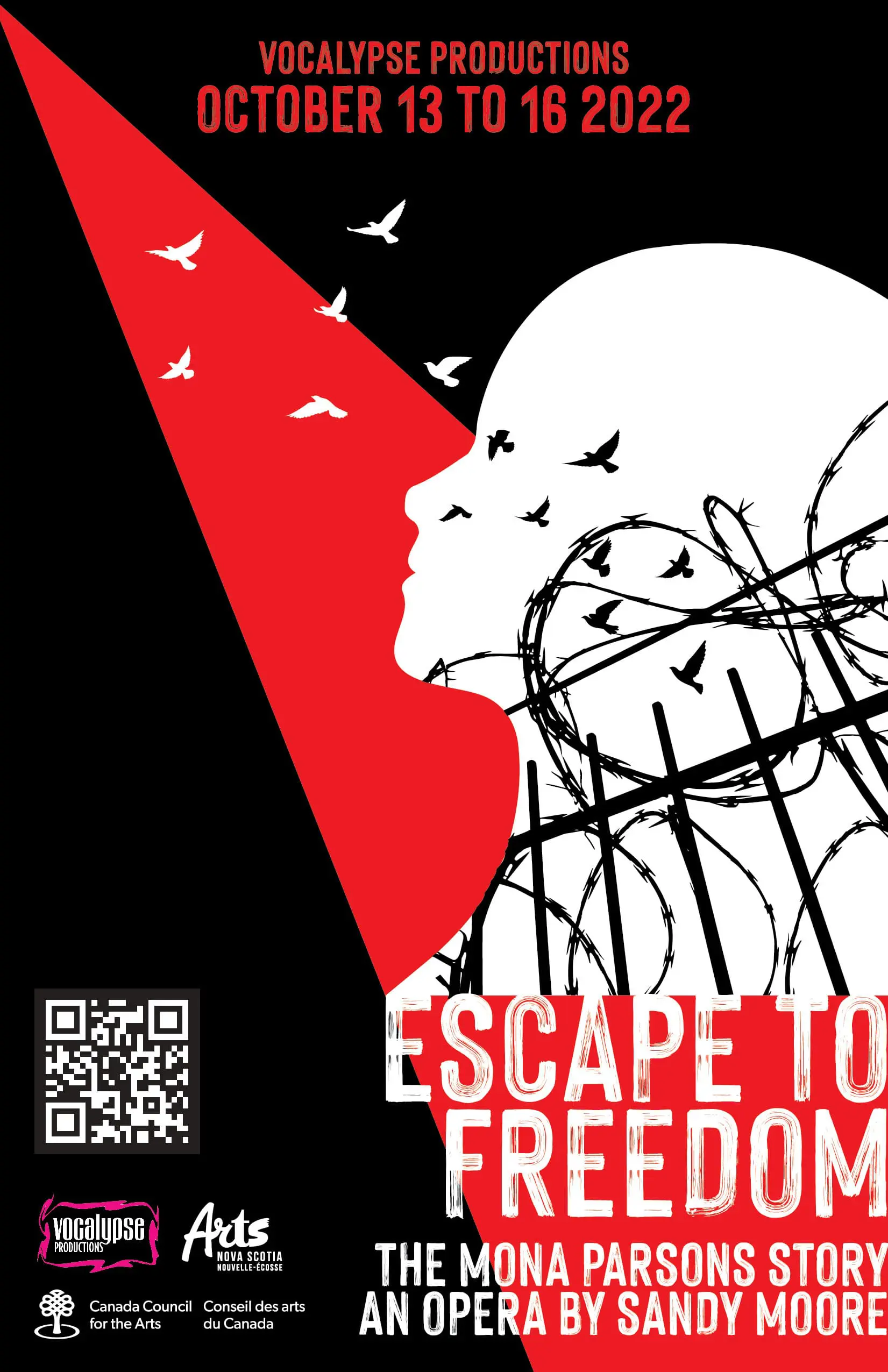 This 90-minute performance of song was an intense interpretation of a real woman’s story. Mona Parsons, the only Canadian woman to be imprisoned by the German army in World War II, was a Nova Scotian who married a Dutch businessman and moved with him to Holland. The couple was involved in a resistance unit that rescued allied airmen but were arrested by the Gestapo in 1941. Although she was originally sentenced to death, this was commuted to life in prison. Along with another prisoner, she successfully fled one of the prisons to which she was relocated, to freedom.