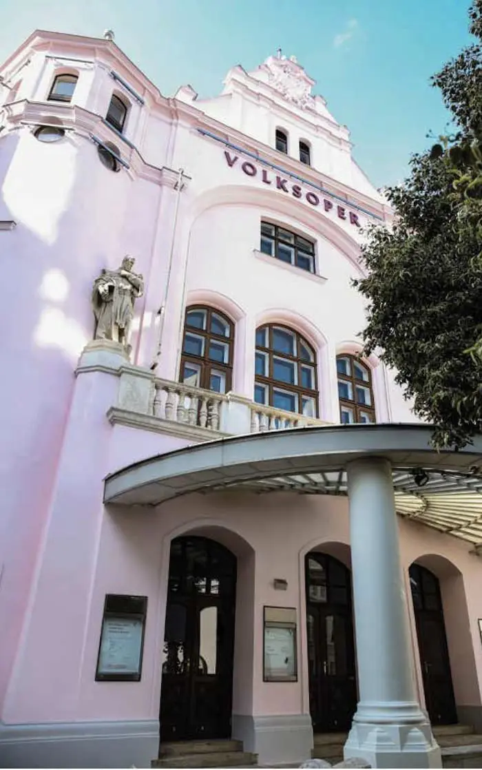 The main entrance of the Volksoper building